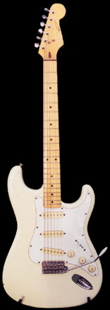 "I started my career in music as a guitarist and didn't play bass until I was about 20 years old. I played a Telecaster with the Beachcombers, I also had a Blonde Gibson 335, a Les Paul gold top and then a Rickenbacker. The guitar I have now is a Fender Squier Stratocaster (Japan). Ian Bairnson picked out this guitar for me many years ago and it plays really well. It's been used on 'Passions Cry', 'Fragments', and there's a lot of it on The Search CD. I use it with a Behringer V-amp, there are plenty of different amp settings and effects on the V-amp and for me, it's fine. To hear an example of me playing the Stratocaster on Too Many Ways, click on either of the two buttons to the bottom right. You can either stream the Flash clip or download a better quality MP3 clip." You can also hear more of Too Many Ways in the MP3 section of the web page." |